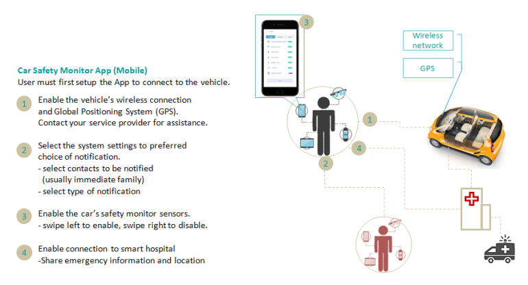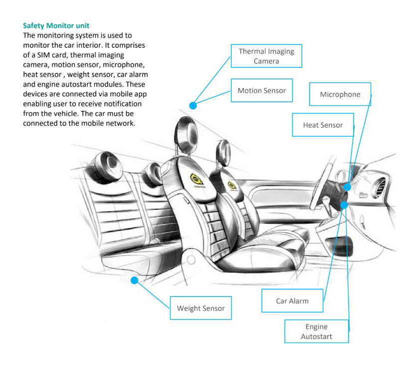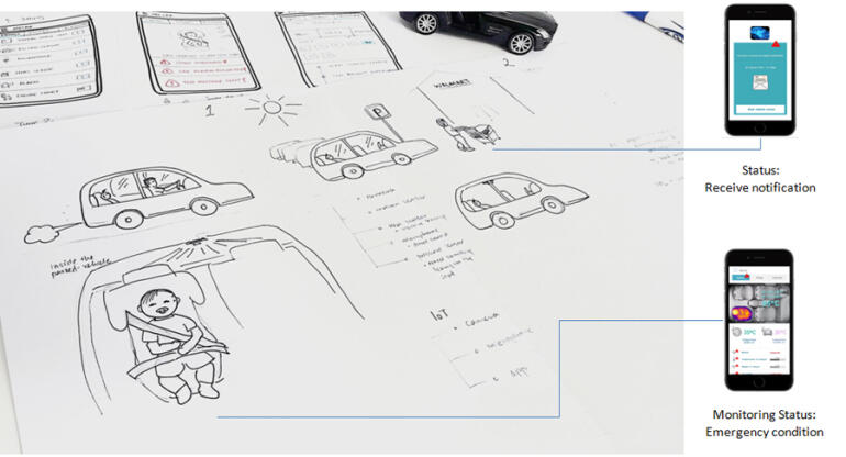 To tackle the safety need to safeguard young children or pets left forgotten in the overheated vehicle as well as car owner functional needs to track and monitor safety in the car and the emotional needs to create a stress-free vehicle ownership experience for the family. Using digital technologies, I explore the safety solution in a vehicle with the use of IoT to create safety features within the car system such that it can determine a subject left in the parked car (by accident) and create a call for action to lower the chance of fatality.